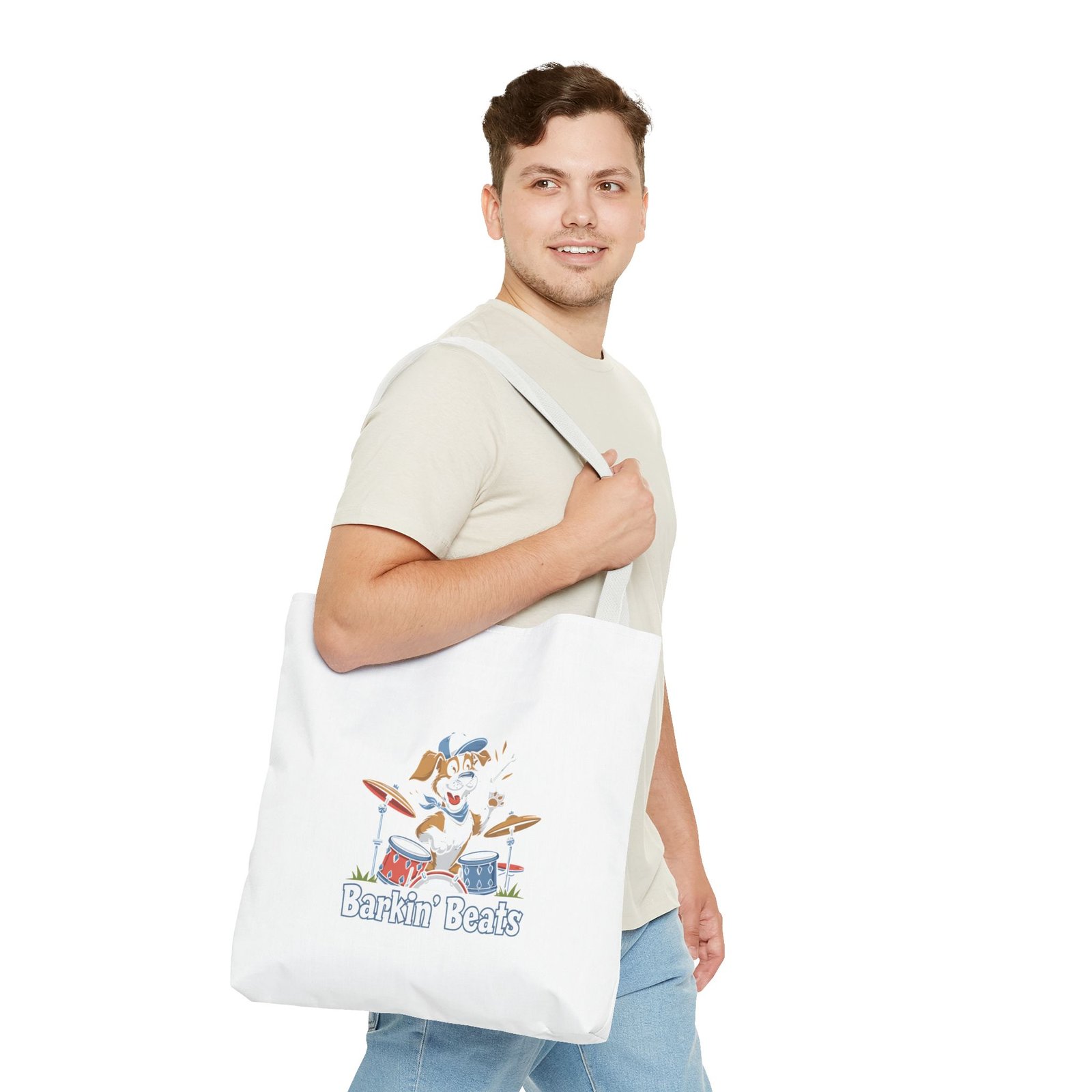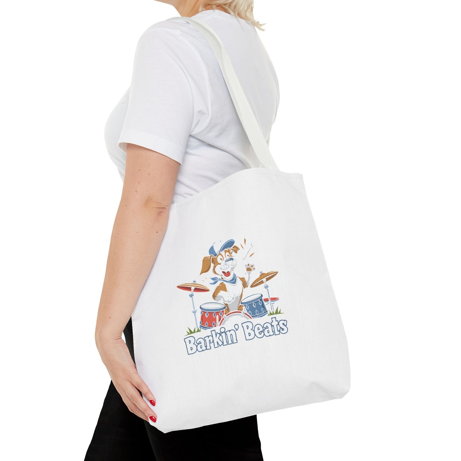 Be the first to review “Barkin Beats Playful Drumming Dog Cartoon Design – Tote Bag”