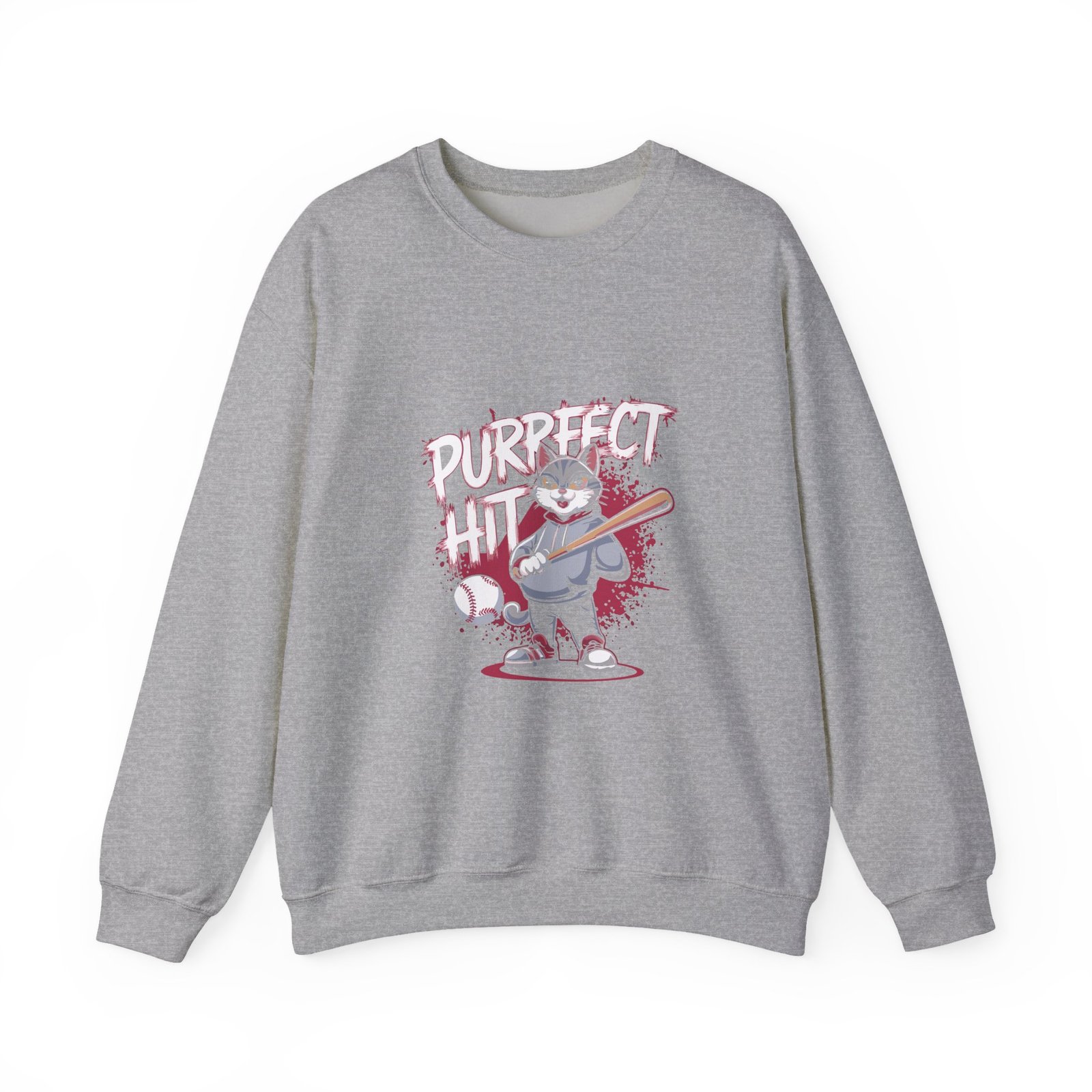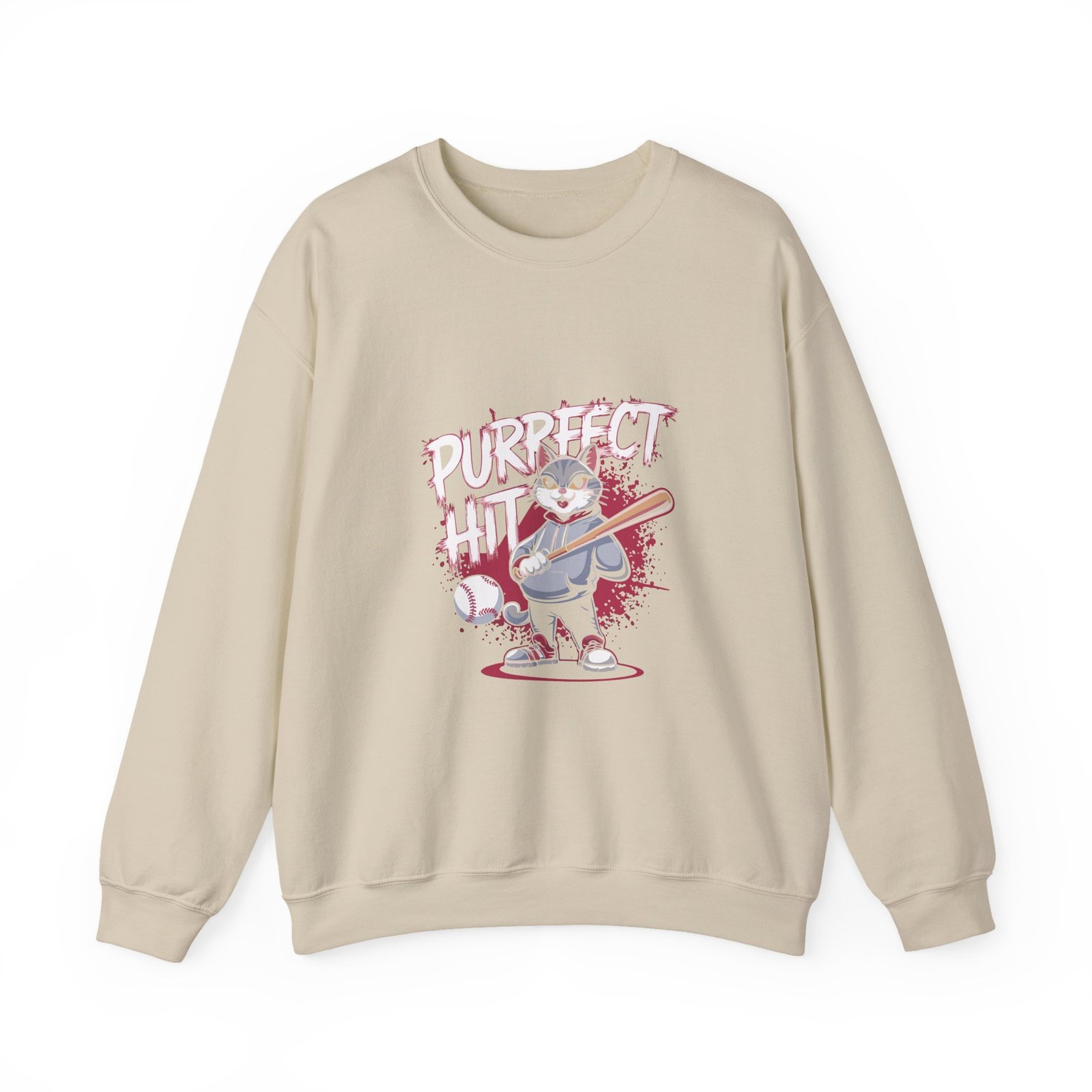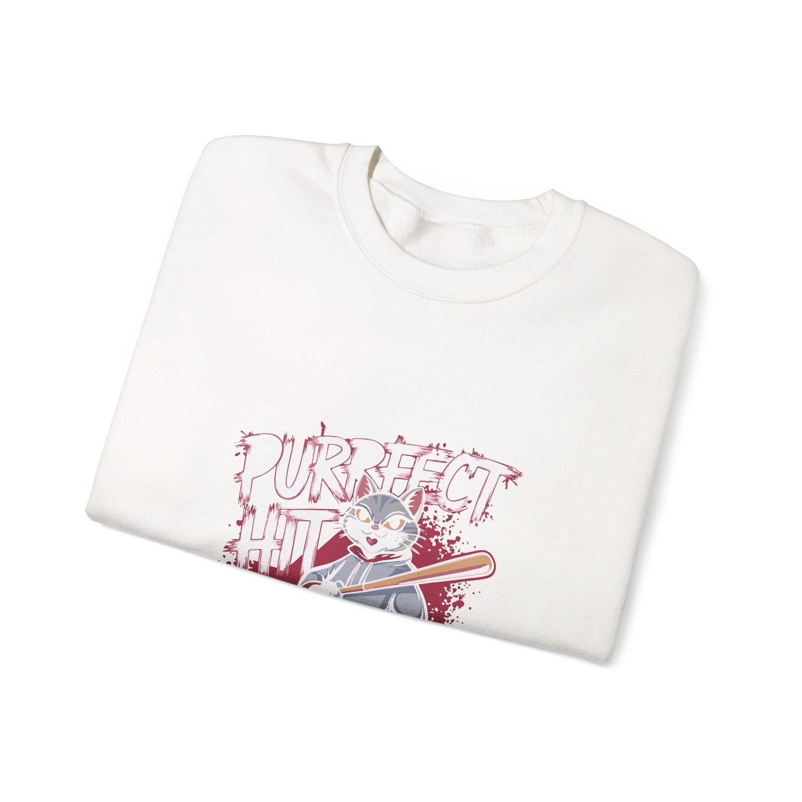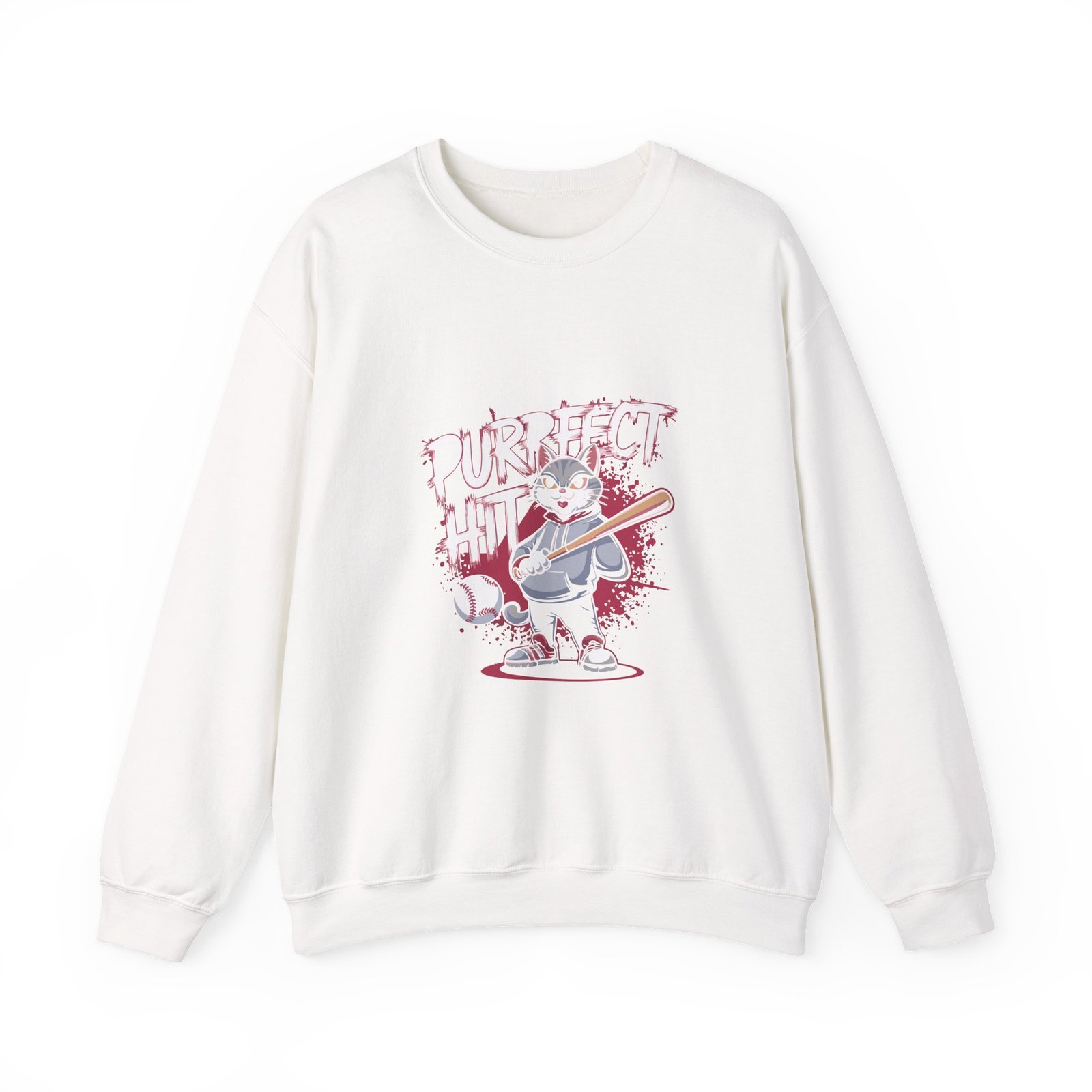 Cute Cartoon Cat Taking a Purrfect Baseball Swing – Sweatshirt