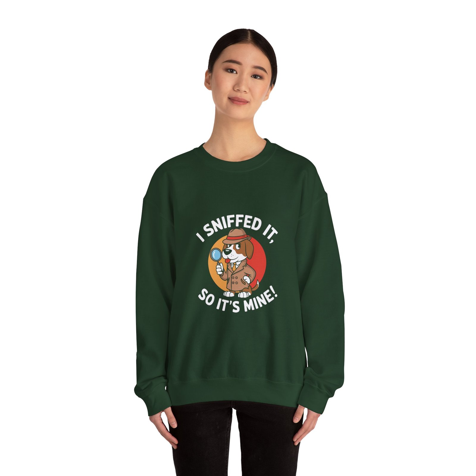 Cute Detective Dog Wearing Glasses Sniffing a Clue Illustration – Sweatshirt