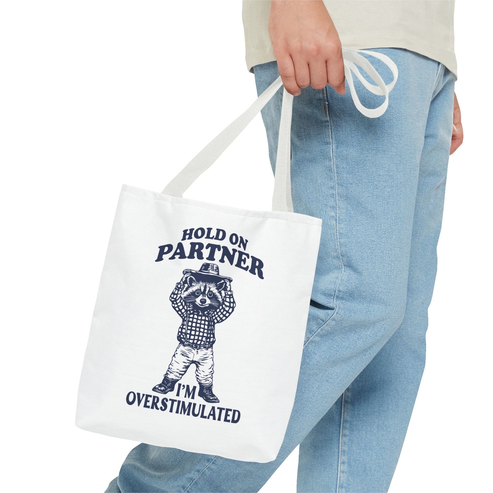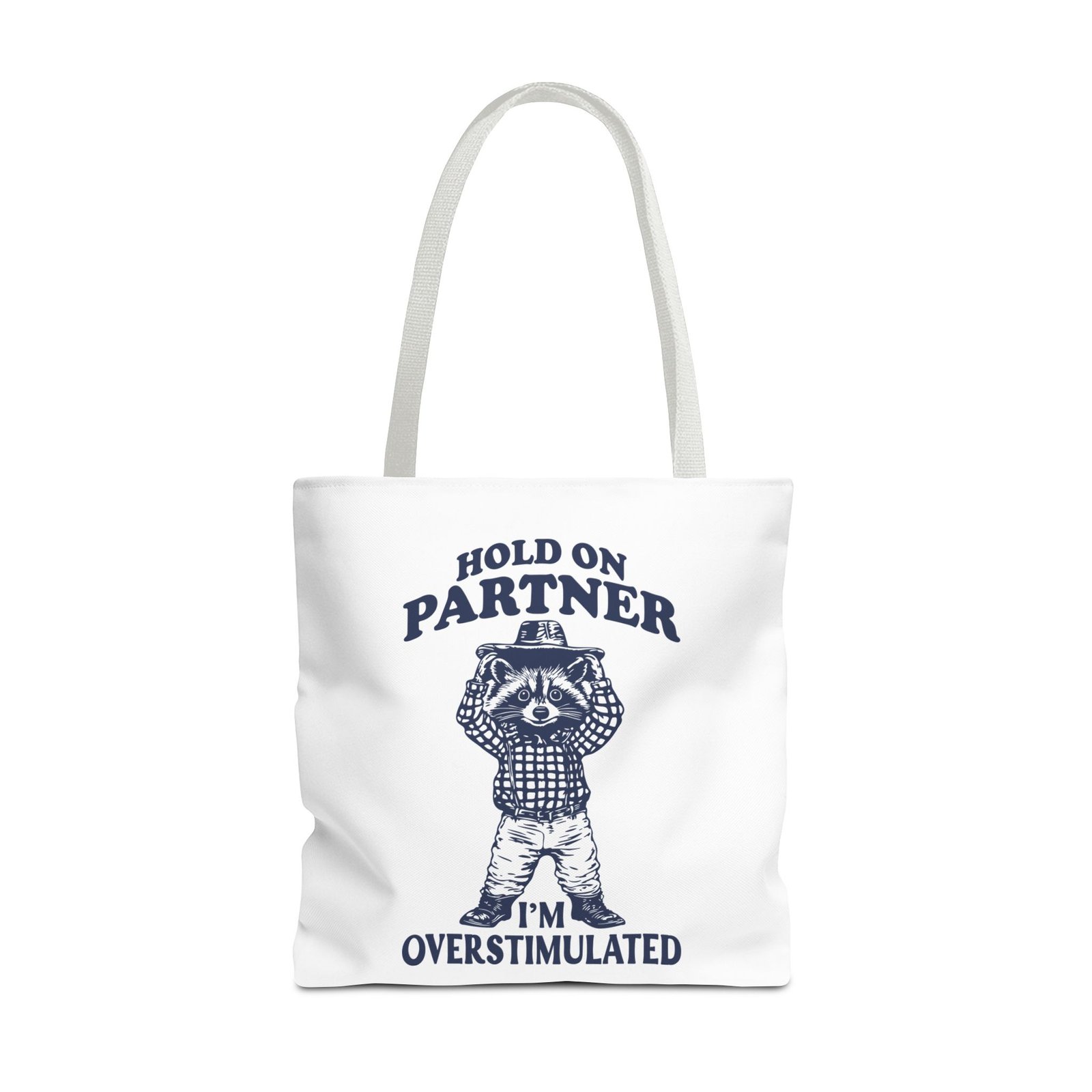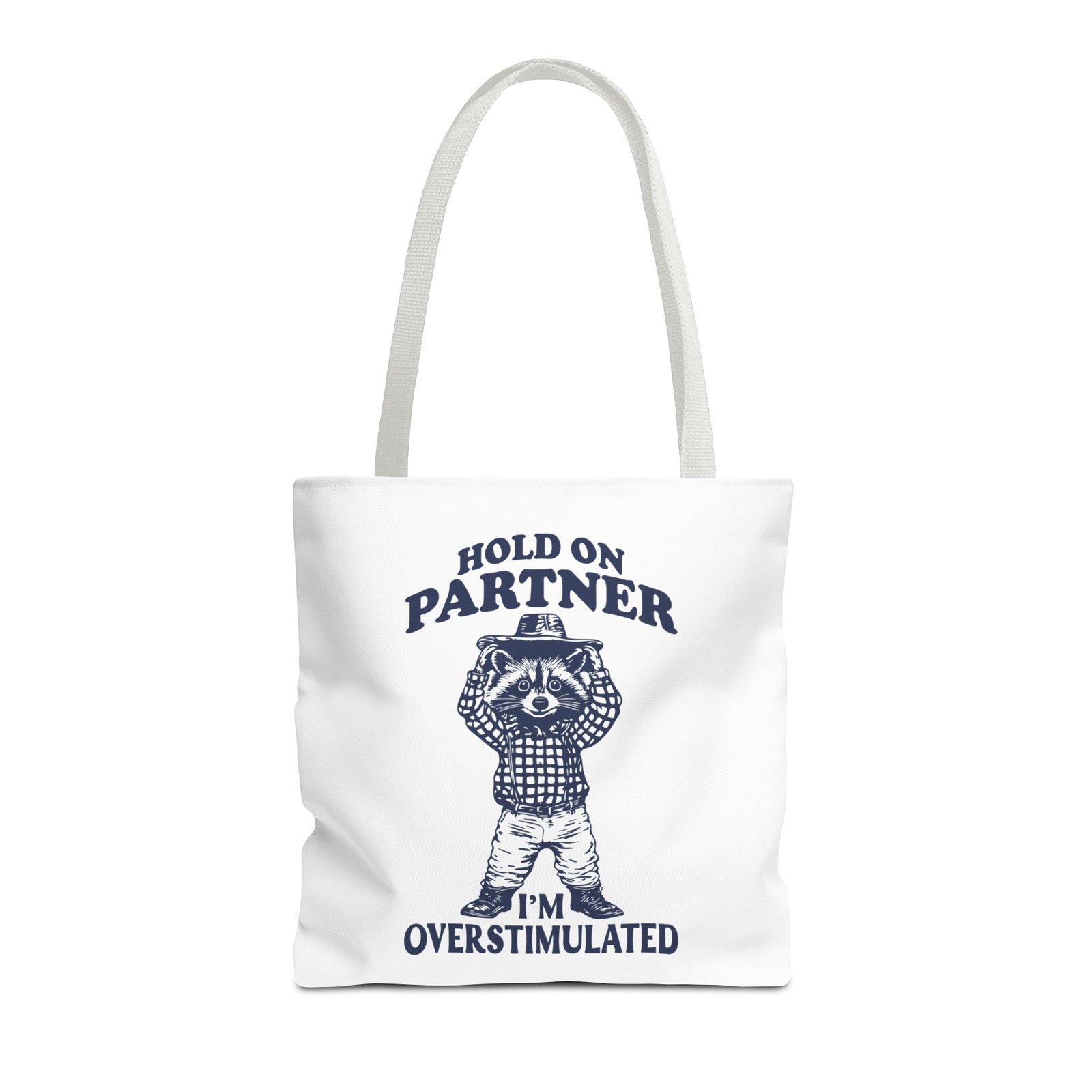 Hold On Partner Funny Raccoon Cartoon Graphic- Tote Bag