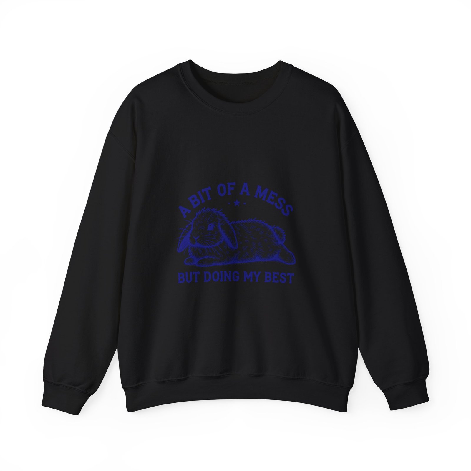 Be the first to review “Whimsical Blue Rabbit with A Bit Of A Mess Typography – Sweatshirt”